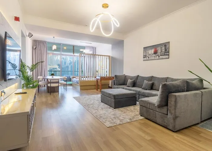 Spațiosul apartment Luxury 3 Bhk In Dubai Marina By Dpie Dec 1306 Apartment este situat în Dubai, la 20 de minute de mers pe jos de The Walk at JBR, și oferă facilități de spa, cum ar fi o piscină interioară. Acesta este situat la 31 de km de Business Bay și la mică distanță de stația de autobuz Big Boat tour start.